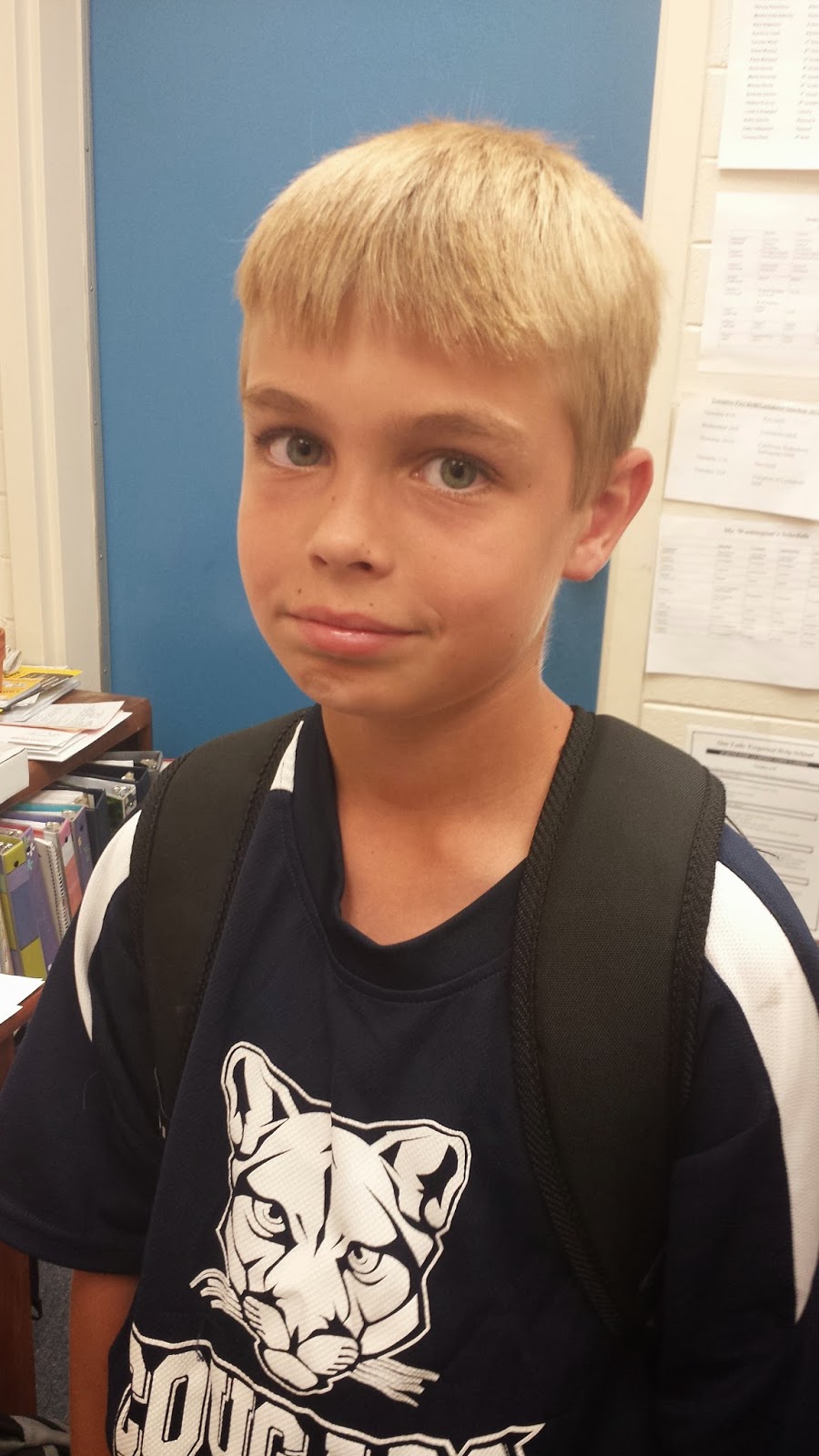 Oh my silly, green-eyed boy. I'm really happy I got a child who got my green eyes! Not really sure where the blonde came from, but those eyes sure are pretty! He has since buzzed his hair which I think makes him look much older.